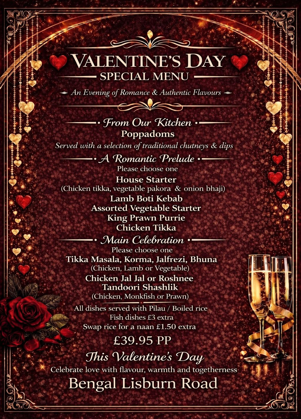 Great Valentine's Offer from The Bengal Brasserie on the Lisburn Road is sure to make a special evening