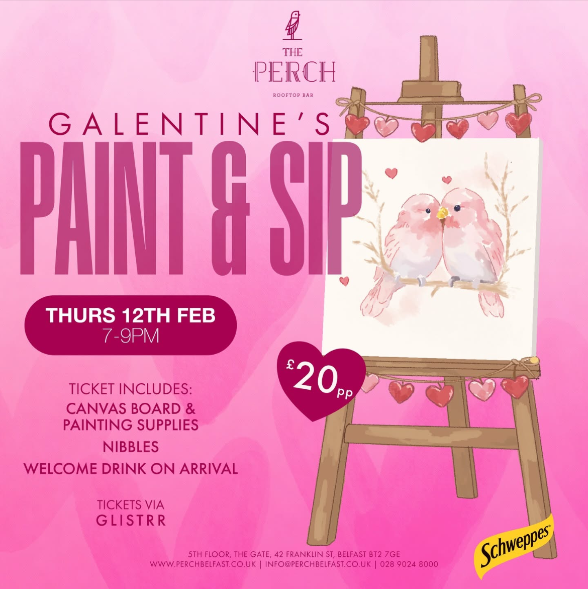 Grab your girlfriends and head to The Perch (Franklin Street) for the Ultimate Galentine’s Paint & Sip 💕🌆