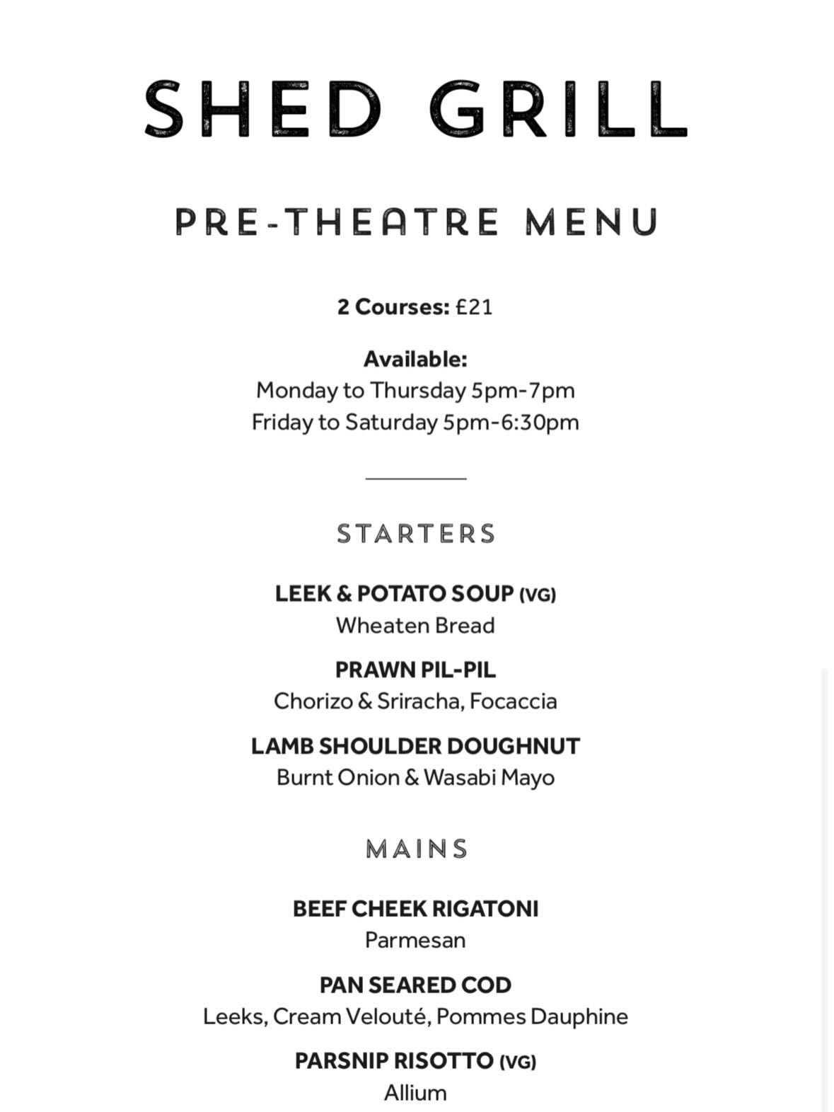 Pre-Theatre Menu = 2x Courses for £21