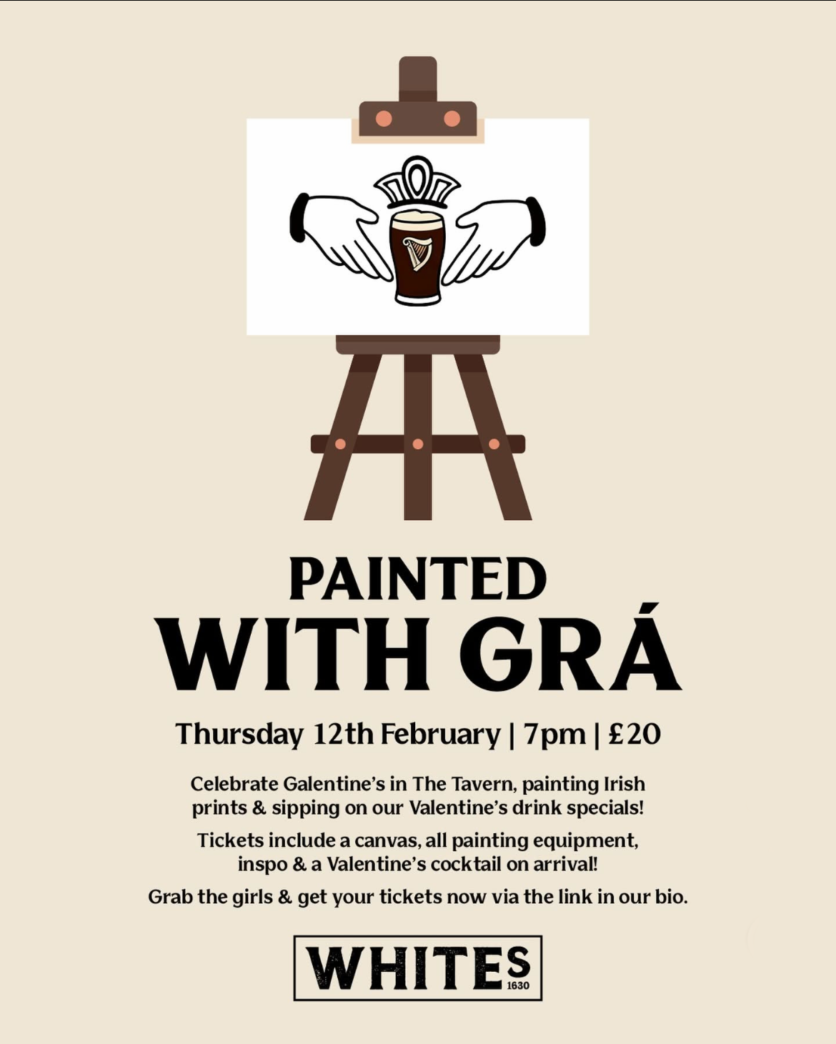 Head to Whites Tavern (Winecellar Entry) for their Paint & Sip event on Thursday 12th February! A wholesome evening, painting your very own Irish print whilst sipping on one of White's Valentines Cocktails!